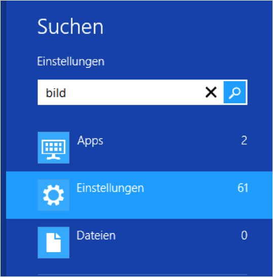 Um etwas zu suchen wechseln Sie in die Windows 8 Oberfläche und tippen einfach den gesuchten Begriff ein. Es öffnet sich der Suchen-Bereich.