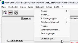 Wechseln Sie in WM-Shot (alter PC) in das Menü "Optionen - Einstellungen".
