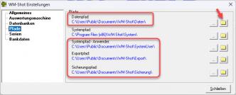 Bei alten WM-Shot Versionen ist der Menüpunkt noch nicht enthalten. Hier müssen Sie selbst den Pfad öffnen.